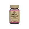 Solgar Female Multiple es un suplemento alimentario con una fórmula de vitaminas, minerales y fitonutrientes de alta potencia: calcio, magnesio, hierro, zinc, selenio, betacaroteno, vitaminas CE, B1, B2, B3 y B6, entre otros nutrientes. *La vitamina E, la vitamina C, el selenio y la riboflavina contribuyen a la protección de las células contra las oxidaciones indeseables. *El calcio, el magnesio y el hierro contribuyen a un metabolismo normal productor de energía. *La vitamina E contribuye al mantenimiento de una piel normal. *El zinc contribuye al mantenimiento de las uñas y cabellos normales. *La vitamina A, el zinc y la riboflavina contribuyen también al mantenimiento de una visión normal. *El calcio es necesario para el mantenimiento de huesos y dientes normales. *El magnesio y el hierro contribuyen a la reducción del cansancio y de la fatiga. *La vitamina C y el hierro contribuyen al normal funcionamiento del sistema inmunitario. 3 comprimidos tomados de acuerdo con el modo de tomar, contribuyen con las cantidades significativas de los valores de referencia de vitamina A, B2, E, C, selenio, calcio, magnesio, hierro, zinc, para obtener los efectos beneficiosos descritos. Es importante seguir una dieta variada, equilibrada y un estilo de vida saludable. Es libre de azúcar, gluten, trigo, productos lácteos, levadura, conservantes o aromatizantes artificiales. Adecuado para veganos.